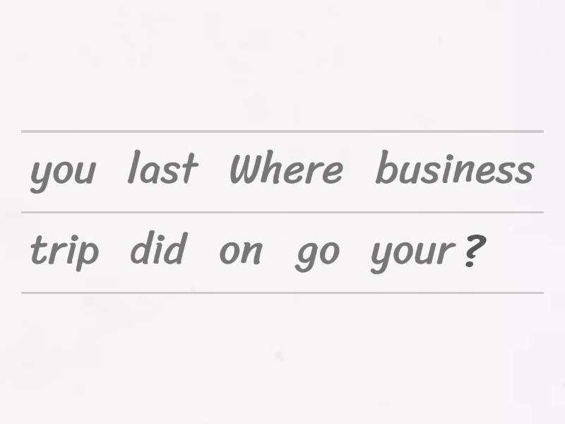 Where did you go on your last business trip?, How did you get there?, Where were you staying while you were away?, How many jobs had you done before this one?, Where were you working five years ago?, When did you start working for this company?, Where had you lived before you started working here?, Where did you learn the skills that you use in your job?,