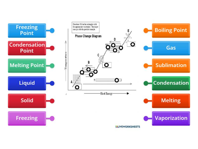 Gas, Solid, Sublimation, Condensation, Freezing, Liquid, Melting Point, Melting, Vaporization, Freezing Point, Condensation Point, Boiling Point.