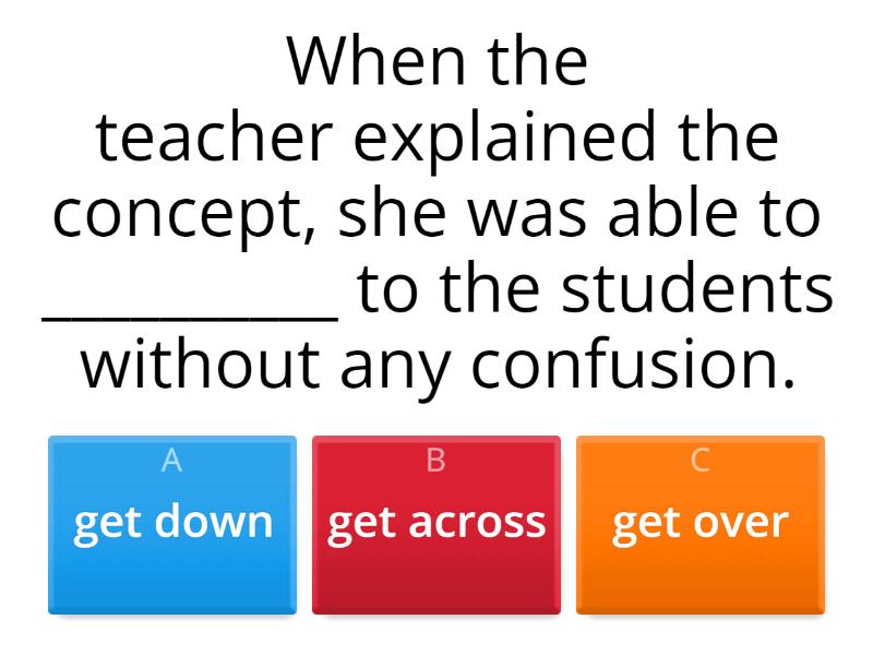 1) When the teacher explained the concept, she was able to __________ to the students without any confusion. a) get down b) get across c) get over 2) The two studies __________ each other, highlighting the differences in methodology. a) get down b) draw a comparison between c) get into 3) Despite his efforts, he couldn’t __________ the challenges he faced in his new job. a) get through b) get into c) get round 4) She managed to __________ the issue quickly, showing her expertise. a) get into b) get out of c) get through 5) The new policy will __________ its benefits if implemented correctly. a) pale in comparison b) outweigh its disadvantages c) bear little resemblance 6) There’s a __________ in the amount of funding available for the two programs. a) yawning gap b) subtle distinction c) marked contrast 7) He had to __________ the disappointment of not getting the promotion to stay motivated. a) get over b) get down c) get on 8) The new design __________ the previous version, making it look outdated. a) gets behind with b) bears little resemblance to c) gets round 9) It’s crucial to __________ the new regulations before applying for the permit. a) get into b) get out of c) get across 10) I often find it challenging to __________ my work when deadlines are tight. a) get on b) get behind with c) get through 11) Her performance __________ the average level, standing out among her peers. a) pales in comparison to b) gets down c) gets into 12) The new strategy is in __________ to the old one, which relied heavily on traditional methods. a) marked contrast b) subtle distinction c) yawning gap