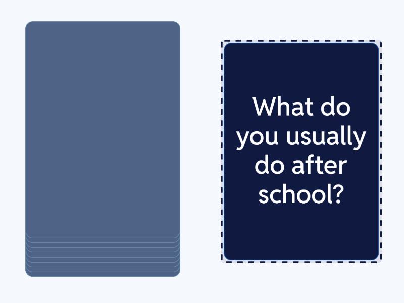 Why are you studying English? , What does your best friend do every day?, What time do your school lessons start?, What do you do in your free time?, What is your best friend doing now?, Think of one person in your family. What’s he / she doing now?, What do you usually do at school? Name three activities., What do you usually do after school?, What language are you speaking now?, What clothes are you wearing right now?.