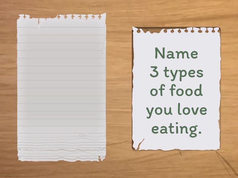 Name 3 types of food you love eating., Name 3 activities you never do., Name 3 people you want to see this week., Name 3 activities that you hate doing., Name 3 pieces of clothes you are wearing right now., Name 3 things you do every day., Name 3 things you’d like to do in the evening., Name 3 things you do every weekend., Name 3 cities you would like to live in., Name 3 things you can’t live without., Name 3 things that are always in your bag..