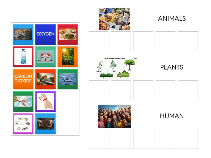 ANIMALS: , , , , PLANTS: CARBON DIOXIDE, , , , HUMAN: , , , , OXYGEN,