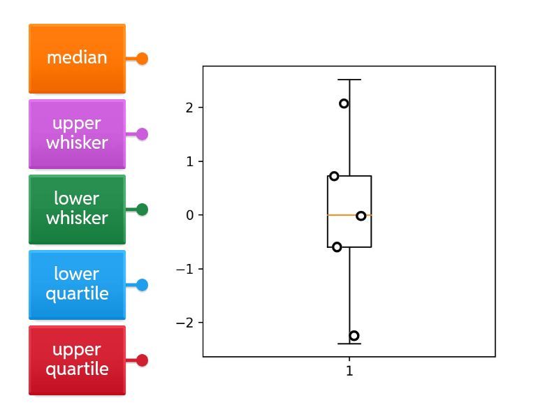 lower quartile, upper quartile, median, lower whisker, upper whisker.