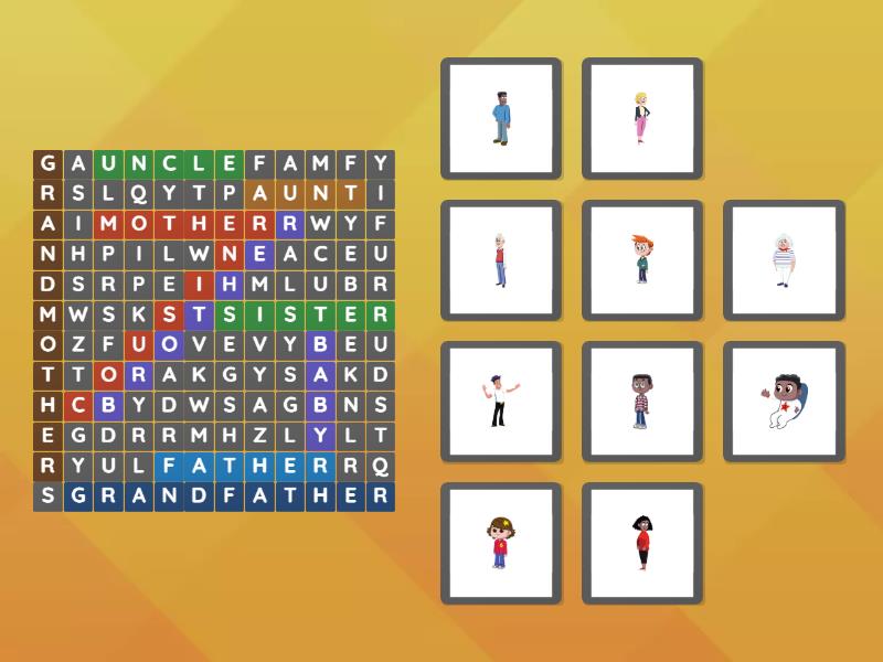 SISTER, BROTHER, MOTHER, FATHER, GRANDMOTHER, GRANDFATHER, AUNT, UNCLE, BABY, COUSIN,
