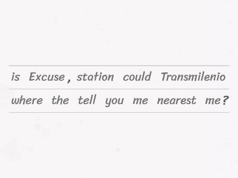 Excuse me, could you tell me where the nearest Transmilenio station is?, Do you have any idea what the meeting was about?, Could you tell me how much a coffee costs in that cafe?, Do you know why Maria didn't come to class yesterday?, Would you mind telling me how old you are?, I was wondering if I could borrow your phone?, Is there any chance you could use your headphones?, I'd love to know if you have any tips for learning English., Would it be possible to pay you back the money I owe you next month?, Could you tell me what time the swimming pool opens on Saturday?,