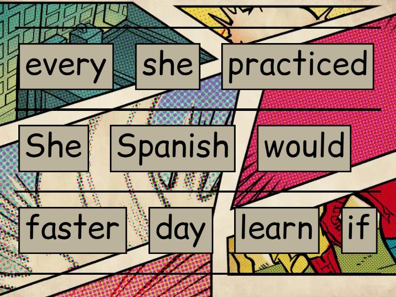 She would learn Spanish faster if she practiced every day, If he didn’t spend so much money, he would save enough for vacation, If we had a car, we wouldn’t take the bus every day, You would feel healthier if you ate more vegetables, If I won the lottery, I would travel around the world,
