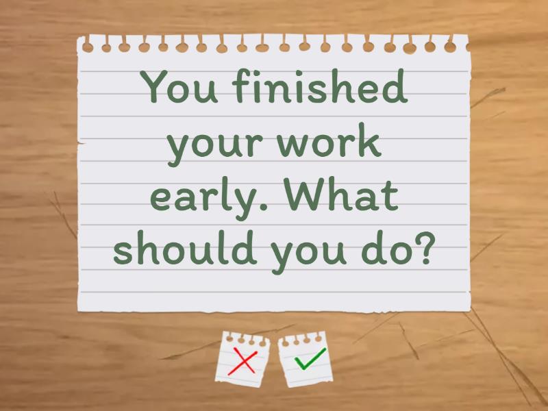 You finished eating and felt a burp coming. What are you going to do?, You were waiting to swing. When it was your turn, another boy jumped in front of you and took the swing. What would you do?, You waited a long time, but your mom didn't come to pick you up after school. What should you do?, A bully threatened to beat you up after school. What should you do?, A boy on the playground keeps pushing you and making you mad. What would you do?, You were sitting in class doing your work and you hear the fire alarm. What should you do?, An adult you didn't know came on to the playground and asked if you would help look for his lost dog. What would you do?, You forgot your lunch at home. What would you do?, The person sitting behind you keeps tapping your chair with his foot. What should you do?, You finished your work early. What should you do?,