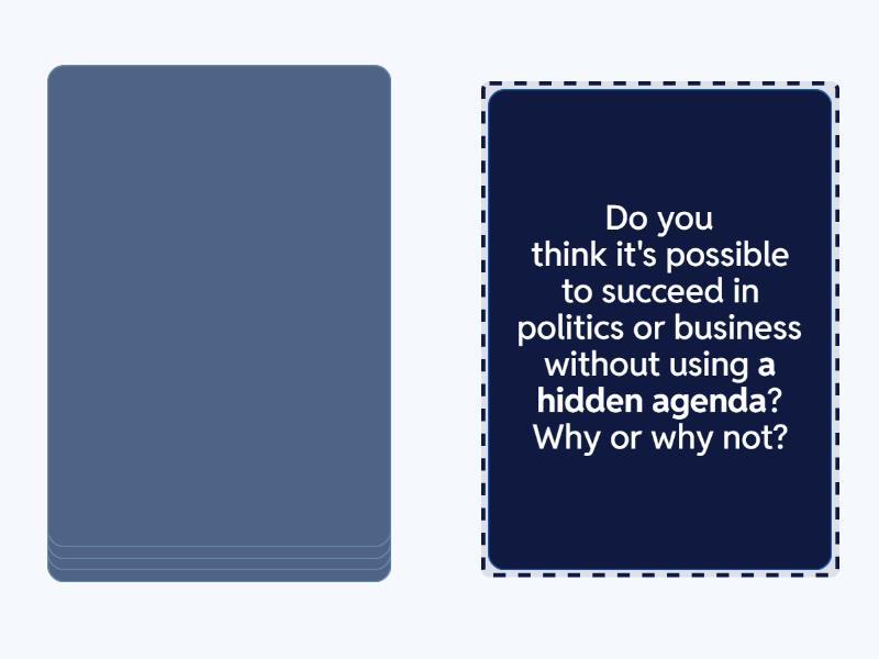 Have you ever been in a situation where the solution to a problem was as clear as day, but others didn’t see it? How did you handle it? , Have you ever received instructions that were as clear as mud? How did you figure things out in the end?, How would you explain your favorite hobby or skill in plain English?, Do you think it's possible to succeed in politics or business without using a hidden agenda? Why or why not?, What’s the most crystal-clear advice you’ve ever received, and how did it impact you?.
