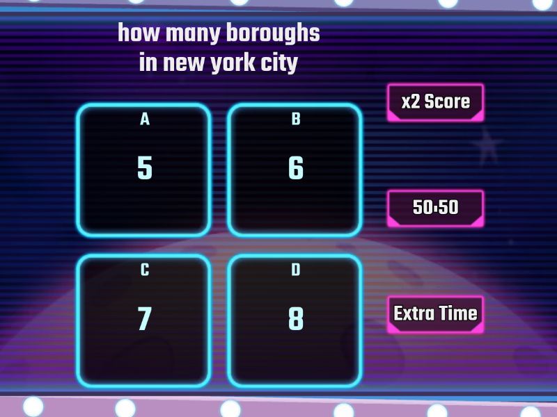 1) how many boroughs in new york city a) 5 b) 6 c) 7 d) 8 2) what is 500x700=____________ a) 350000 b) 200 c) 700 d) 500 3) what is 100+200+_________ a) 300 b) 200 c) 400 d) 500 4) what does N-Y-J stand for___________ a) New york Jets b) New york rangers c) new york knicks d) new york mets 5) what is the date is new years eve_____ a) 12/31 b) 1/1 c) 12/30 d) 9/1 6) what is the shortest moth of the year_______ a) February b) August c) May d) march 7) when is nathan S brthday______ a) 9/16 b) 11/4 c) 12/16 d) 9/13 8) how meny inches in one yard_____ a) 36 b) 46 c) 76 d) 86 9) how meny states in this country________ a) 50 b) 60 c) 51 d) 57 10) when did we get our kumas a) 12/10/24 b) 12/3/24 c) 11/10/24 d) 12/23/24 11) what time do we end school___- a) 400 b) 300 c) 200 d) 100 12) how meny months in one year a) 12 b) 13 c) 14 d) 16 13) WHAT IS THE NAME OF THE NATIONAL ANTHEM OF THE USA a) star spangled banner b) YMCA c) america  d) dj 14) who has a log ending in bluy a) Bluy b) dad c) mom d) bingo 15) how memy stripes are on the americaana flag__ a) 13 b) 14 c) 15 d) 16 16) how meny dwarfs in snow white_____ a) 7 b) 8 c) 9 d) 10 17) how many nickels in one dollar a) 20 b) 21 c) 22 d) 23