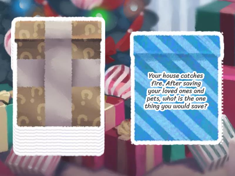 If you knew the end of the world was in one week, what would you do?, Would you like to know the precise date of your death?, For $50,000 would you stop washing, brushing your teeth or using deodorant for 3 months?, If you could call yourself when you were fifteen years old for a twenty-minute conversation, whatwould you tell yourself? , If you were a food, what food would you be?, If you were given any one luxury item, but you couldn't sell it, what luxury item would you want?, What superpower would you like to have?, If you were having difficulties on an important test and you could safely cheat by looking at someone's paper, would you do it?, Your house catches fire. After saving your loved ones and pets, what is the one thing you would save?, Would you take 25 years of great happiness, if you knew at the end of it, you would die?.