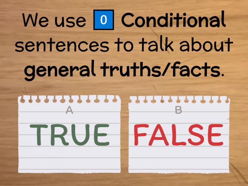 1) We use 0️⃣ Conditional sentences to talk about general truths/facts. a) TRUE b) FALSE 2) We use 1️⃣ Conditional sentences to give instructions. a) TRUE b) FALSE 3) We use 1️⃣ Conditional sentences to talk about possible events. a) TRUE b) FALSE 4) "I want to see if you're okay." is a conditional sentence. a) TRUE b) FALSE 5) IF (present simple) & MAIN (present simple) is the structure of... a) 0 CONDITIONAL b) 1st CONDITIONAL 6) "She won't go unless you go." is a conditional sentence. a) TRUE b) FALSE 7) "There's a pen on the desk should you ever need one." is a conditional sentence. a) TRUE b) FALSE 8) IF (present simple) & MAIN (future simple) is the structure of... a) 0 CONDITIONAL b) 1st CONDITIONAL 9) "She gets tired 😮‍💨 if she runs fast." is... a) CORRECT b) INCORRECT 10) COMPLETE: If you ___ , you ___ Bariloche. a) like skiing / will go b) would like skiing / go c) like skiing / must go d) will like skiing / will go 11) Last sentence was a: a) 0️⃣ CONDITIONAL with a MODAL VERB b) 1️⃣ CONDITIONAL with a MODAL VERB 12) "If you'll water the plants 🌱, they'll grow faster." is.. a) CORRECT b) INCORRECT 13) "I give it 📦 to him if I see him." is.. a) CORRECT b) INCORRECT 14) COMPLETE: I ___ an umbrella in case it ___. a) should take / will rain b) take / should rain c) will take / rained d) will take / rains 15) Last sentence was a: a) 0️⃣ CONDITIONAL with an ALTERNATIVE TO IF b) 0️⃣ CONDITIONAL with an ALTERNATIVE TO IF + a MODAL VERB c) 1️⃣ CONDITIONAL with a ALTERNATIVE TO IF d) 1️⃣ CONDITIONAL with an ALTERNATIVE TO IF + a MODAL VERB