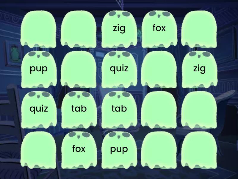 zig, fox, quiz, pup, tab, jug, shack, tack, cup, sip,