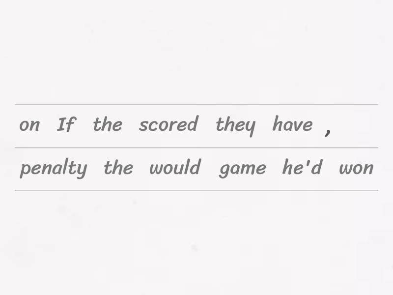 If he'd scored on the penalty , they would have won the game, We wouldn't have missed the movie if you'd been ready on time , If they'd seen the sign , they wouldn't have sat down, Ella would have finished the race if she hadn't fallen over, If I'd taken my umbrella, I wouldn't have gotten wet, He wouldn't have crashed if he'd stopped at the red light,