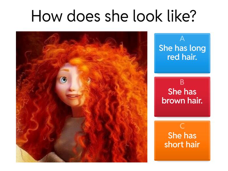 1) How does she look like? a) She has long red hair. b) She has brown hair. c) She has short hair 2) Describe this boy a) He wears glasses b) She is wearing glasses c) He has long hair 3) What does she look like? a) She is in her eighties b) She is in her forties c) She is in her twenties  4) What does she look like? a) She is short b) She is fat c) She is tall and thin 5) What does he look like? a) He has a beard b) He's bald c) He has grey hair 6) What does she look like? a) She is blond b) She has curly hair c) She has dreadlocks
