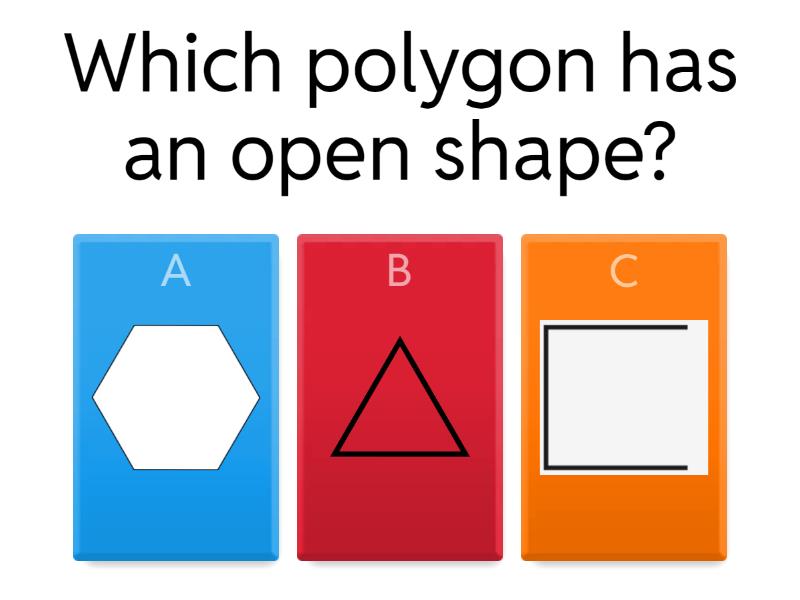 1) Which polygon has an open shape? a) b) c) 2) How many equal parts is the circle divided into?  a) four b) three c) two 3) How many equal parts is the circle divided into? a) four b) two c) three 4) Which image shows the circle partitioned into halves (2 equal parts) a) b) c) 5) How many equal parts are there if a pie is partitioned into thirds? a) 2 b) 4 c) 3 6) How many equal parts are there if a cookie is partitioned into halves? a) 2 b) 3 c) 5 7) How many equal parts are there if a pizza is partitioned into thirds? a) 2 b) 3 c) 4