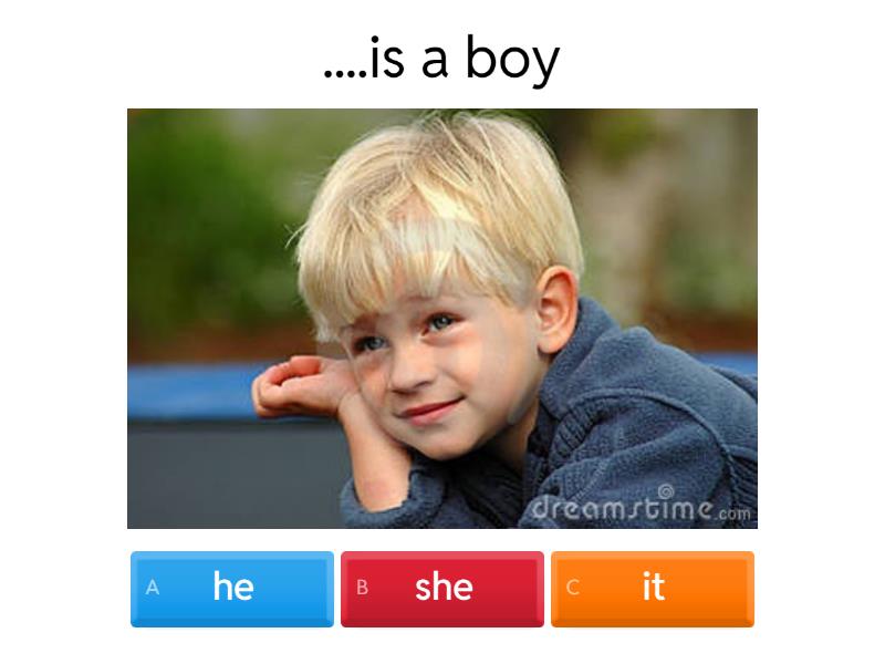 1) ....is a boy a) he b) she c) it 2) ....is a cat. a) he b) she c) it 3) .....is a girl. a) he b) she c) it 4) ....is a doctor. a) he b) she c) it 5) .....are friends. a) it b) they c) you 6) ....are boys. a) it b) he c) they 7) ...is a pen a) he b) she c) it 8) .....is an elephant a) he b) she c) it 9) ....is a mother a) she b) he c) it 10) ....are boys and girls. a) I b) they c) we 11) .....is a father. a) she b) he c) it 12) ....am a boy. a) he b) she c) I