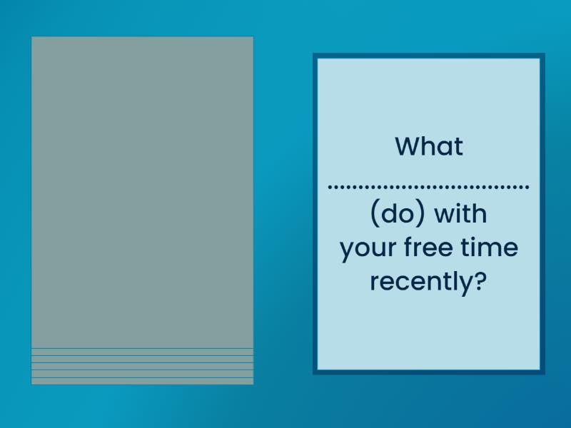 What talent do you have? How long ................................. (do) it?, How long ................................. (live) at your house?, What ................................. (do) with your free time recently?, Are there any Youtube channels that you have been following? What is it?, How long ................................. (study)English?, Who has been annoying you this week?, Which series ................................. (watch) lately?.