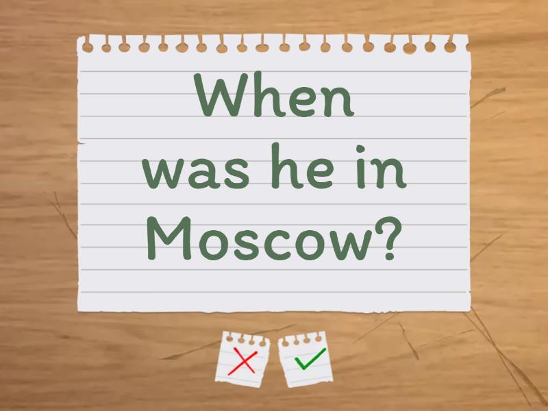 When was the film? - Когда был фильм?, Where were you? - Где ты был?, When was he in Moscow? - Когда он был в Москве?, Where was he yesterday? - Где он был вчера?, Where was the film? - Где был фильм?, Where were you and Jane? - Где были ты и Джейн?, Were you with them? - Ты был с ними?, Was Jane with you? - Джейн была с тобой?, Was Mark with Jane? - Были ли Марк с Джейн?, How was the film? - Как был фильм? (Как прошёл фильм), How was the pizza? - Как была пицца? , How was the chocolate? - Как был шоколад?, How was the football game? - Как была футбольная игра?,