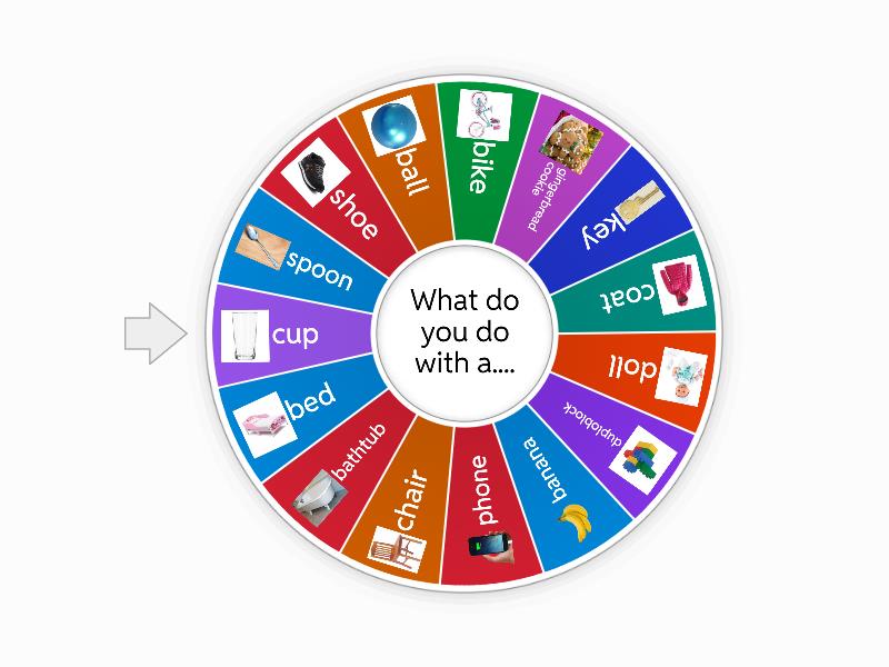spoon, shoe, ball, bike, gingerbread cookie, key, coat, doll, duploblock, banana, phone, chair, bathtub, bed, cup.