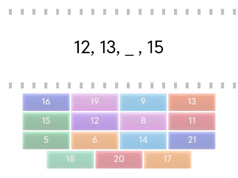 14 - 12, 13, _ , 15, 11 - 10, _ , 12, 13, , 17 - 15, 16, _ , 18, 15 - 14, _ , 16, 17, 19 - 17, 18, _, 20, 16 - _, 17, 18, 19, 18 - 20, 19, _ ,17, 13 - 14, _ ,12, 11, 12 - 15, 14, 13, _, 9 - 7, 8, ____ 10, 20 - 17, 18, 19,____, 6 - 5, ____,7, 8, 9, 5 - ___ 6, 7, 8, 8 - 7, ____ , 9, 10, 11, 21 - 19, 20, ____,