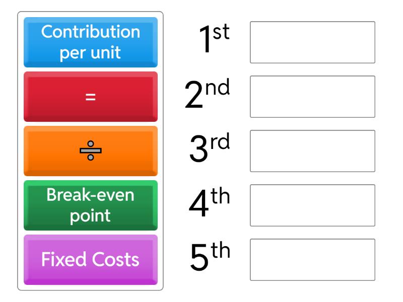 : Fixed Costs, ➗, Contribution per unit, =, Break-even point,