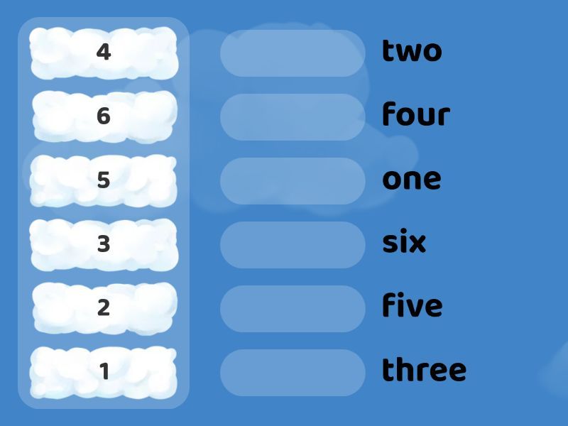 5 - five, 2 - two, 3 - three, 1 - one, 4 - four, 6 - six,