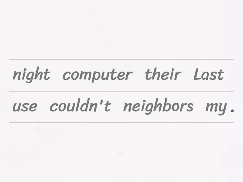 Last night my neighbors couldn't use their computer., What was the problem?, There was a storm, and they couldn't get on the internet., Could they get on your internet., No they couldn't. I forgot the password., Last year we wanted to visit our family in Thailand., We didn't go because we couldn't afford a ticket., This year we are saving money so we can buy a ticket.,