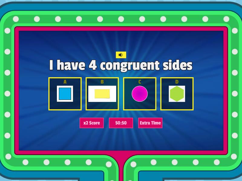 1) I have 4 congruent sides a) b) c) d) 2) I have acute angles a) b) c) d) 3) I have perpendicular lines a) b) c) d) 4) I have right angles a) b) c) d) 5) I am an obtuse triangle a) b) c) d) 6) I have only 2 sets of parallel lines  a) b) c) I d) 7) I am a non polygon a) I b) c) d) 8) I have exactly 1 line of symmtery  a) I b) c) d) 9) I have at least one obtuse angle a) b) c) d) 10) I have 6 vertices a) b) c) d) I