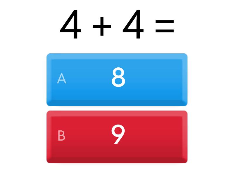 1) 4 + 4 = a) 8 b) 9 2) 3 + 7 = a) 12 b) 10 3) 13 + 1 = a) 14 b) 18 4) 15 + 3 = a) 14 b) 18 5) 2 + 2 = a) 5 b) 4 6) 1 + 2 = a) 3 b) 4 7) 4 + 5 = a) 9 b) 10 8) 6 + 6 = a) 12 b) 13 9) 13 + 7 = a) 19 b) 20 10) 1 + 1 = a) 3 b) 2 11) 10 + 2 = a) 12 b) 10 12) 17 + 2 = a) 19 b) 18 13) 3 + 3 = a) 7 b) 6 14) 5 + 6 = a) 11 b) 10 15) 5 + 5 = a) 10 b) 11 16) 11 + 5 = a) 16 b) 17 17) 12 + 6 = a) 12 b) 18 18) 14 + 6 = a) 19 b) 20 19) 7 + 7 = a) 14 b) 15 20) 7 + 8 = a) 14 b) 15 21) 8 + 8 = a) 15 b) 16 22) 2 + 9 = a) 10 b) 11 23) 3 + 8 = a) 11 b) 10 24) 4 + 9 = a) 13 b) 12 25) 10 + 5 = a) 15 b) 16 26) 9 + 9 = a) 18 b) 19 27) 13 + 4 = a) 17 b) 18 28) 11 + 9 = a) 19 b) 20 29) 10 + 6 = a) 15 b) 16 30) 10 + 10 = a) 19 b) 20