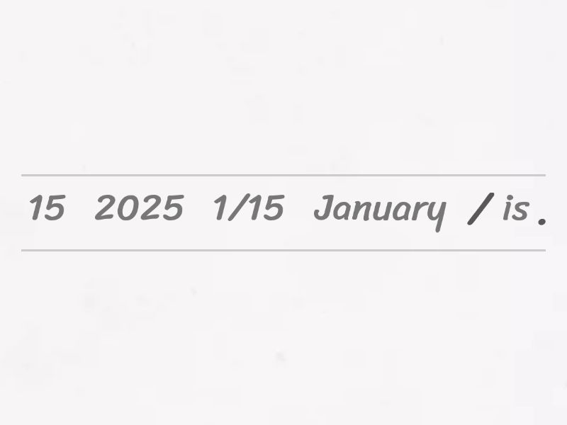 January 15 is 1/15 /2025., February 3 is 2/3 /2025., March 2 is 3/2 /2025., April 15 is 4/15 /2025., May 30 is 5/30 /2025., June 14 is 6/14 /2025., July 2 is 7/2 /2025., August 8 is 8/8 /2025., September 3 is 9/3 /2025., October 31 is 10/31 /2025., November 5 is 11/5 /2025., December 25 is 12/25 /2025.,