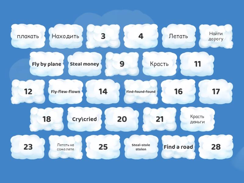 Find-found-found - Находить, Find a road - Найти дорогу, Fly-flew-flown - Летать, Fly by plane - Летать на самолете, Cry\cried - плакать, Steal-stole stolen - Красть, Steal money - Красть деньги, Airport - Аэропорт, To go Kennedy Airport - Ехать в аэропорт кеннеди, Ticket - билет, A ticket to London - Билет в Лондон, Little luggage - Мало багажа, Fast - Быстрый, To run fast - Бегать быстро,