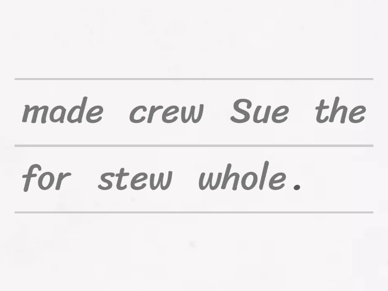 Sue made stew for the whole crew., What month will we go on the cruise?, Sue threw on her new suit to go to the pool., What fruit is good this month?, The crew likes blue fruit juice., Is that your suitcase for the cruise?,