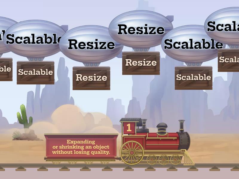 Scalable - The ability to resize without losing quality, Mathematical Shapes - The geometric forms (lines, curves) that build vector graphics, Lines - The basic building blocks of vector graphics, connecting points smoothly, Rotate - Turning an object around a fixed point in vector design, Resize - Expanding or shrinking an object without losing quality., Raster Graphics - Images made of pixels that lose quality when enlarged, Pixelation - The blocky appearance of raster images when zoomed in., Resolution - The number of pixels in an image, affecting clarity,