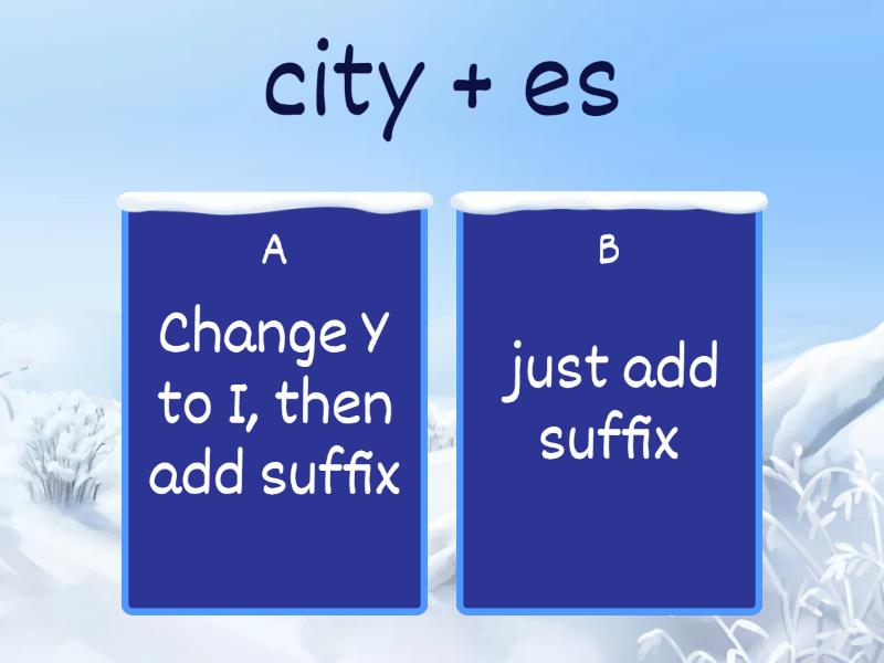 1) city + es a) Change Y to I, then add suffix b) just add suffix 2) spray + ed a) Change Y to I, then add suffix b) just add suffix 3) play + ful a) Change Y to I, then add suffix b) just add suffix 4) envy + ed a) Change Y to I, then add suffix b) just add suffix 5) display + ed a) Change Y to I, then add suffix b) just add suffix 6) dry + ing a) Change Y to I, then add suffix b) just add suffix 7) deny + ed a) Change Y to I, then add suffix b) just add suffix 8) tidy + er a) Change Y to I, then add suffix b) just add suffix 9) gray + ness a) Change Y to I, then add suffix b) just add suffix 10) envy + ing a) Change Y to I, then add suffix b) just add suffix 11) copy + ing a) Change Y to I, then add suffix b) just add suffix 12) spunky + ness a) Change Y to I, then add suffix b) just add suffix 13) soapy + er a) Change Y to I, then add suffix b) just add suffix 14) rely + es a) Change Y to I, then add suffix b) just add suffix 15) funky + est a) Change Y to I, then add suffix b) just add suffix 16) plenty + ful a) Change Y to I, then add suffix b) just add suffix