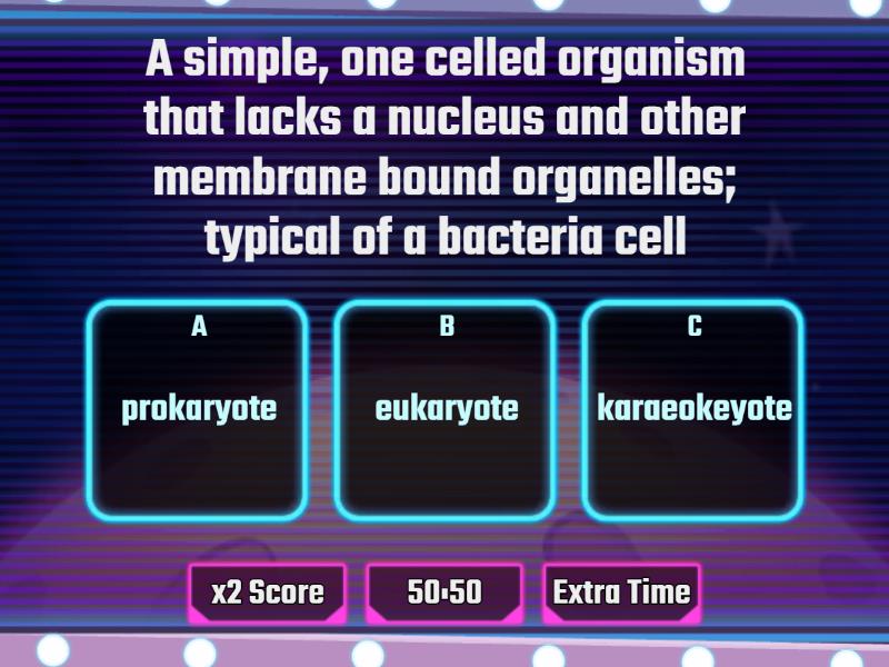 1) A simple, one celled organism that lacks a nucleus and other membrane bound organelles; typical of a bacteria cell a) prokaryote b) eukaryote c) karaeokeyote 2) A cell with a nucleus and membrane bound organelles; typical of plant, animal, fungi and protist cells a) prokaryote b) eukaryote c) donkeyote 3) A process by which an organism produces offspring or young a) reproduction b) mitosis c) variation 4) Trait are passed during reproduction through a) genetic material (DNA) b) offspring c) eukaryotes 5) True or False: Asexual reproduction results in offspring with identical genetic information a) True b) False 6) True or False: Sexual reproduction results in offspring with genetic variation a) True b) False 7) Does the following describe a A type of reproduction in which one parent makes an exact copy of itself a) asexual reproduction b) sexual reproduction 8) A type of reproduction when each parent, through the sperm and the egg donates half the genetic materials to the offspring a) asexual reproduction b) sexual reproduction 9) The offspring of asexual reproduction a) have identical traits to the one parent b) have traits of two different parents 10) A type of asexual reproduction in which prokaryotic organisms, such as bacteria, makes a copy of the DNA, then splits in half, forming two cells with a copy of the original DNA a) Binary Fission b) Spores c) Budding 11) A type of asexual reproduction in which fungi, such as mushrooms, have tiny reproductive structures that contain a copy of the parent DNA a) Binary Fission b) Spores c) Budding 12) A type of asexual reproduction in which some eukaryotic organisms, like jellyfish, grow a smaller version of the parent organism and then later separates a) Binary Fission b) Spores c) Budding 13) True or False: Some organisms reproduce asexually and sexually during different parts of their life cycle a) True b) False 14) What is a gamete? a) A sex cell, such as a sperm or egg b) A part that can grow from a prokaryotic cell and then become its own organism c) A type of asexual reproduction 15) Which of the following is true about a gamete ( a sperm or an egg)? a) They contain an exact copy of each parent's complete DNA b) the egg contains exactly half of the mother's DNA and the sperm contains exactly half of the father's DNA c) Eggs and sperm contains different amounts of each parent's DNA 16) A zygote is formed when a) Asexual reproduction happens through budding b) A sperm fertilizes an egg c) There is too much DNA from one parent 17) If you look exactly like one of your parents a) you only have one parent's DNA b) you have more of one parent's DNA than the other c) you still have exactly 50% of each parent's DNA 18) Which type of reproduction has the advantage of being time efficient and requiring less energy?   a) asexual reproduction b) sexual reproduction 19) Which type of reproduction has the disadvantage of requiring two organisms and more energy to complete? a) asexual reproduction b) sexual reproduction 20) True or False: An organism is more protected by variation in asexual reproduction. If the parent has a genetic disease, the offspring may not have it too.  a) True b) False 21) What is a version of a gene or trait? a) Allele b) Genotype c) Phenotype 22) The appearance that results due to a dominant allele is its a) genotype b) phenotype c) prototype 23) In genotypes, the capital letter often represents the a) dominant gene b) recessive gene 24) A monohybrid (one trait with two alleles) has a) 3 possible genotypes and 2 possible phenotypes b) 2 possible genotypes and 3 possible phenotypes c) 4 possible genotypes and 1 possible phenotype 25) Which of the following does not occur during interphase? a) cells grow b) cells synthesize proteins c) cells obtain and process nutrients and waste d) cells replicate their genomes e) cells divide rapidly to form a new organism 26) How many daughter cells are created through mitosis? a) 1 b) 2 c) 4 27) How many daughter cells are created through meiosis? a) 1 b) 2 c) 4 28) What type of cell division occurs when a new organism is reproduced? a) mitosis b) meiosis c) symbiosis 29) How many cycles of cell division must occur for meiosis to be complete? a) 1 b) 2 c) 4