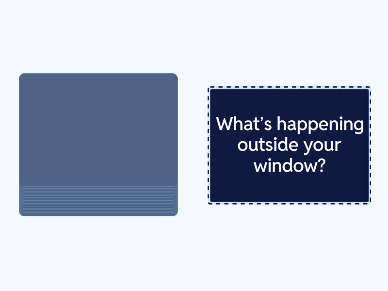 What time do you usually wake up on weekdays?, How often do you eat breakfast at home?, How many times a week do you exercise?, Do you prefer coffee or tea? Why?, What kind of music do you usually listen to?, Do you believe in luck? Why or why not?, What do you do when you feel bored?, What is your best friend doing at this moment?, What are you wearing today?, What book or TV series are you watching these days?, What are you thinking about right now?, What’s happening outside your window?, Are you studying anything new this week?, What are you planning to do later today?, Who is texting you the most these days?, What fashion trends are people following this year?, What’s one thing you are trying to improve these days?, What are your favorite sports teams doing this season?, Is anyone in your class/workplace always annoying?, Who is always borrowing your things without asking?, What is one bad habit that people are always doing, and it annoys you?.