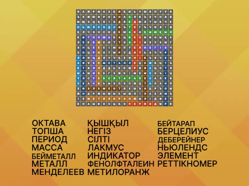 октава, топша, период, масса, бейметалл, металл, менделеев, қышқыл, негіз, сілті, лакмус, индикатор, фенолфталеин, метилоранж, бейтарап, берцелиус, деберейнер, ньюлендс, элемент, реттікномер,
