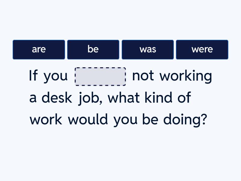 If you ____ not working a desk job, what kind of work would you be doing? If your job were less stressful, how ____ your daily routine change? If you ____ switch to a part-time position, how would you spend your extra time? If you ____ a more challenging role, do you think you would enjoy your work more? If you were doing freelance work, how would you ____ your schedule? If you ____ a less tiring job, would you have more energy for hobbies? If you could land a high-paying job, what ____ you do with the extra income? If your job ____ not so tough, would you consider staying in it long-term?be If you ____ such a stressful job, how would your health be affected? If you were ____ a temporary contract, would you take it or wait for a permanent position? If you were ____ in your dream job, how different would your life be right now?