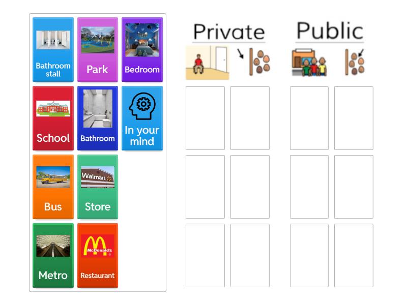 : Bedroom, Bathroom, Bathroom stall, In your mind, : Restaurant, Store, School, Park, Bus, Metro,