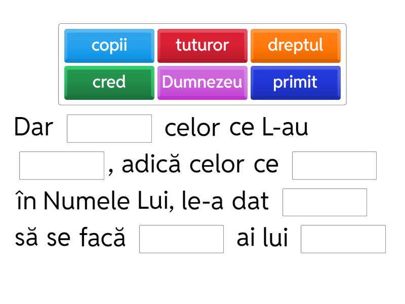 Dar ____ celor ce L-au ____, adică celor ce ____ în Numele Lui, le-a dat ____ să se facă ____ ai lui ____
