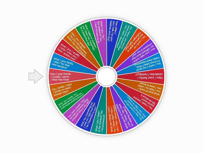 1) What / your family / plan / for their next vacation? 2) What / you / usually / cook / when you / have / guests over? 3) How / you / prepare / for your next big event (exam, trip, work project)? 4) What / habits or routines / you / think / be / important for a productive day? 5) What / you / do / this weekend? You / look forward to it? 6) How often / you / talk / to your relatives, and why? 7) You / follow / any news or trends at the moment? What / you / think / about them? 8) You / work / on any personal goals or challenges right now? 9) How / your daily routine / be / different these days compared to last year? 10) You / watch / any good TV shows lately? What makes them interesting? 11) How / your family / celebrate / holidays? 12) What kind of music / you / listen to / when you / need to focus? 13) You / meet / anyone special soon? Tell me about it. 14) You / stay / in touch with any old friends at the moment? How / you / keep / in contact? 15) What sports or activities / you / think / be / best for staying healthy? 16) What new things / you / try / these days? How / you / feel / about them? 17) What / you / read / at the moment? You / recommend it? 18) What / be / something you / work on / right now? that / be / important to you? 19) You / think / people / buy / too many unnecessary things nowadays? Why or why not? 20) What / you / usually / do / on weekends? Do you wish you could change anything about it? 21) You / prefer / read / books or watch movies? Why? 22) How / your friends / usually / spend / their free time?