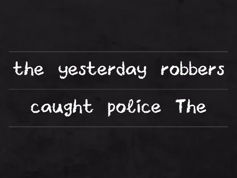 The police caught the robbers yesterday, We like our teacher., The tall man waved at me., The students are playing outside., Mary will visit her aunt tomorrow., The audience enjoyed the movie., The baker has made some chocolate cakes.,