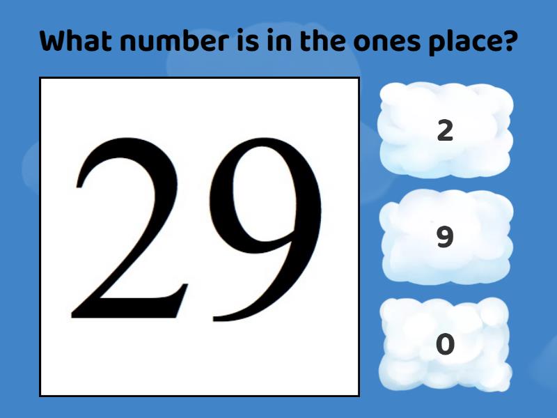 1) What number is in the ones place?  a) 2 b) 9 c) 0 2) What number is in the tens place?  a) 2 b) 9 c) 0 3) What number is in the tens place?  a) 1 b) 7 c) 0 4) What number is in the ones place?  a) 1 b) 7 c) 0 5) Has 5 tens and ___ ones? a) 5 b) 6 c) 0 6) Has ____ tens and 6 ones? a) 5 b) 6 c) 0 7) What number is in the tens place? a) 9 b) 0 c) 8 8) What number is in the ones place? a) 9 b) 0 c) 8 9) How many ones? a) 0 b) 8 c) 1 10) How many tens? a) 0 b) 8 c) 1 11) What number is in the tens place? a) 0 b) 7 c) 6 12) What number is in the ones place? a) 0 b) 7 c) 6
