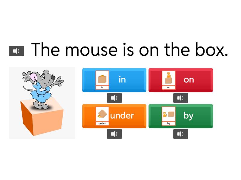 1) The mouse is on the box.  a) in b) on c) under d) by 2) The book is under the table.  a) in b) on c) under d) by 3) The dog is on the skateboard.  a) in b) on c) under d) by 4) The cat is under the chair.  a) in b) on c) under d) by 5) The dog is on the table.  a) in b) on c) under d) by 6) The emoji is in the box.  a) in b) on c) under d) by 7) The apple is by the book. a) in b) on c) under d) by 8) The person is by the box.  a) in b) on c) under d) by 9) The rabbit is in the hat.  a) in b) on c) under d) by 10) The shoes are under the table.  a) in b) on c) under d) by 11) The cat is in the box.  a) in b) on c) under d) by 12) The bird is by the box.  a) in b) on c) under d) by