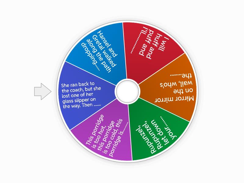 1) Hansel and Gretal walked along the path dropping...... 2) I will huff and puff and I'll............... 3) Mirror mirror on the wall, who's the........ 4) Rupunzel, Rupunzel, let down your........ 5) This porridge is too hot, this porridge is too cold, this porridge is......... 6) She ran back to the coach, but she lost one of her glass slipper on the way. Then .......