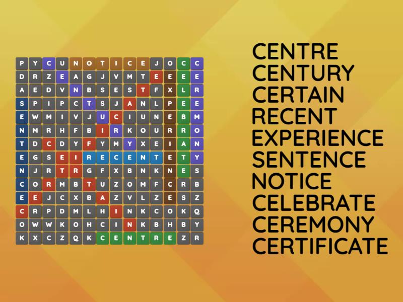 centre, century, certain, recent, experience, sentence, notice, celebrate, ceremony, certificate,
