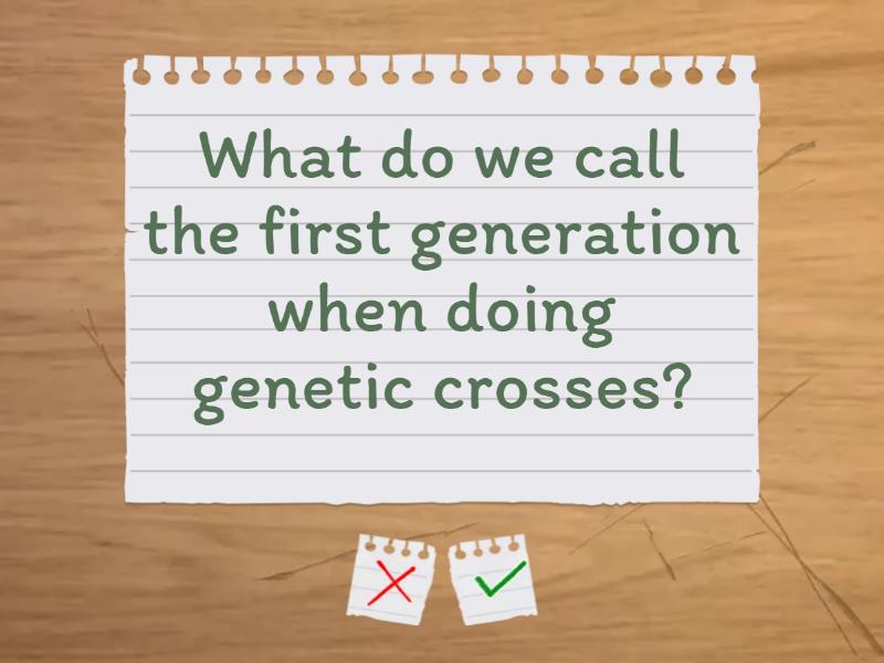 Define 'allele' - Different forms of (the same) gene, Define 'gene' - A section of DNA/of a chromosome that codes for one characteristic, Define 'genotype' - The combination of alleles you have for a characteristic i.e. BB, Bb or bb, Define 'phenotype' - Physical appearance or trait you have as a result of your genotype i.e. blue eyes, What is meant by the dominant allele? - The allele that only needs one copy to be expressed in the phenotype, represented with a capital letter., What is meant by the recessive allele? - The allele that needs both copies to be expressed in the phenotype. Represented with a lowercase letter., What is meant by a homozygous genotype? - A genotype with 2 of the SAME allele i.e. 2 dominant or 2 recessive., What is meant by a heterozygous genotype? - A genotype with one dominant and one recessive allele., What do we call the parent generation when doing genetic crosses? - The P generation, What do we call the first generation when doing genetic crosses? - The F1 generation, What do we call the second generation when doing genetic crosses? - The F2 generation, In a true-breeding cross, describe the genotypes of the parents? - One homozygous dominant and one homozygous recessive, In a true breeding cross, will all the F1 be heterozygous or homozygous? - Heterozygous, In a true-breeding cross, will all the F1 display the dominant or recessive phenotype? - Dominant., What is the expected ratio of dominant: recessive phenotype in the F2 generation of a true-breeding cross? - 3:1, Why is the predicted 3:1 ratio not always achieved in the F2 generation of a true-breeding cross? - Fertilisation is a random process with an element of chance.,
