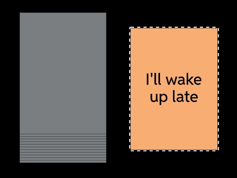 If it's sunny this weekend, If I'm bored, I'll buy some chocolate, If I buy a new phone, I'll wake up late , I'll cook dinner , If I work hard, I'll be very happy, If I don't do my English homework, My neighbours will be angry, If I go to the cinema, If my best friends forget my birthday, If I have free time.