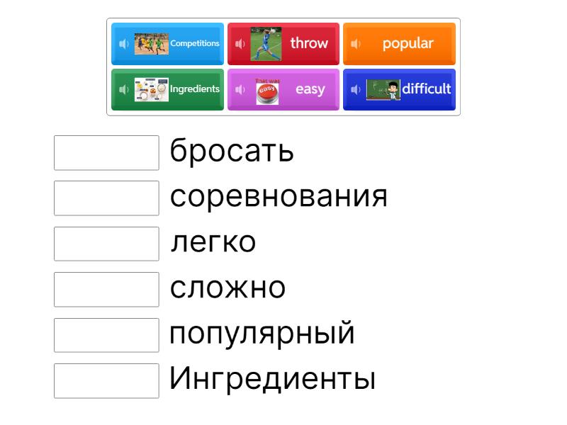 Ingredients - Ингредиенты, popular - популярный, Competitions - соревнования, throw - бросать, easy - легко, difficult - сложно,