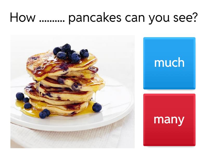 1) How .......... pancakes can you see? a) much b) many 2) How …..... sugar do you eat? a) much b) many 3) I don’t eat ……. chocolate. a) many b) much 4) I eat ……..... cereal. a) a lot of b) much 5) How ...... carrots are there? a) much b) many 6) There isn’t ……...... pasta for dinner. a) many b) much 7) I eat .... burgers. a) a lot of b) many 8) There isn't .... lemonade for you. a) much b) a lot of 9) How ...... bottles od lemonade did you buy? a) many b) much 10) There aren't ...... eggs in the fridge. a) much b) many